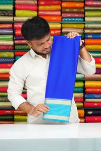Soft Benny Crepe Plain With Double Border Royal Blue With Coppersulphate Blue Saree