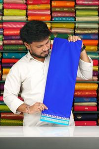Soft Benny Crepe Plain With Mango Creeper Border Royal Blue With Coppersulphate Blue Saree