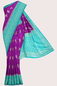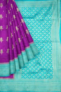 Soft Bhagalpuri Jute Silk Zari Weaving Flower Butti Maganta Pink With Rama Green Saree
