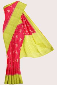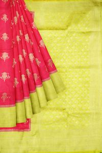 Soft Bhagalpuri Jute Silk Zari Weaving Flower Butti Peach With Light Green Saree