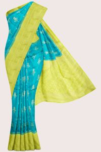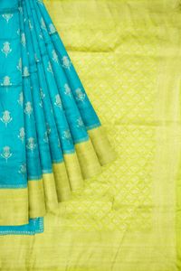 Soft Bhagalpuri Jute Silk Zari Weaving Flower Butti Rama Green With Light Green Saree
