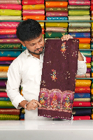 Soft Brasso Silk Full jal Design Foil Print Dark Wine Saree