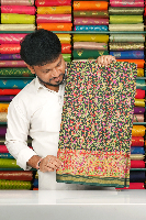 Soft Chanderi Silk Floral Kalamkari Print Kadi Border Dark Bottle Green Saree