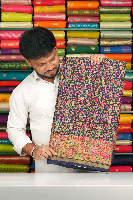 Soft Chanderi Silk Floral Kalamkari Print Kadi Border Dark Navy Blue Saree
