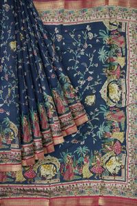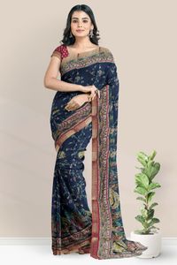 Soft Chanderi Silk Full Jal Printed Design Dark Blue with Pink Saree