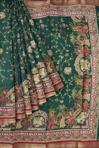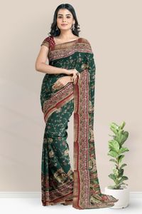 Soft Chanderi Silk Full Jal Printed Design Dark Green With Maroon