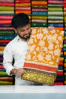 Soft Chanderi Silk Pichwai Digital Print Yellow With Brown Saree