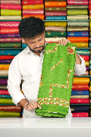 Soft Charli Silk All Over Jal Design Lahariya Print Mehandi Green Saree