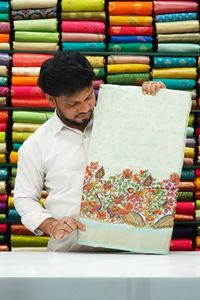 Soft Chrushed Silk Peacock And Floral Print Pastel Saree
