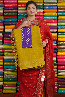 Soft Crepe Gold Zari Checks And Butti Yellow With Purple Saree