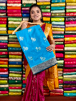 Soft Crepe Kanchi Border Dark Coppersulphate Blue And Peacock Blue Saree