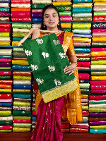 Soft Crepe Kanchi Border Dark Green And Neon Green Saree