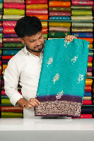 Soft Crepe Silk Emboose Digital Print Zari Border Rama Green With Purple Saree