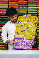 Soft Crepe Silk Gold Zari Printed Pattern Mehandi Green With Purple Saree