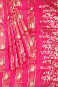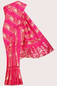 Soft Crepe Silk Meena Work Butti Bright Rani Pink Saree