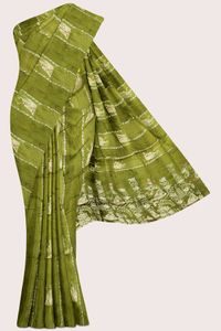 Soft Crepe Silk Meena Work Butti Mehandi Green Saree