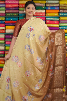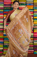 Soft Crepe Silk Tie And Die Cream With Brown Saree