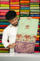 Soft Crepe Tussar Silk Cow Pichwai Digital Print Pista Green With Purple Saree