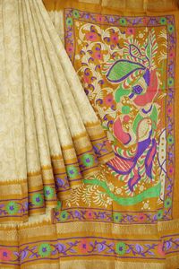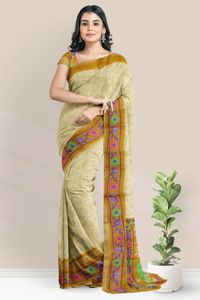 Soft Crushed Silk Floral Digital Print Chandhanam Yellow With Mustard Yellow Saree