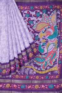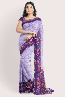 Soft Crushed Silk Floral Digital Print Lavender with Purple Saree