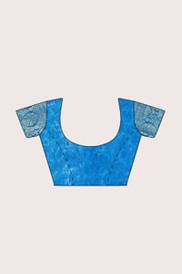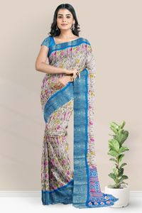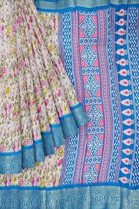 Soft Crushed Silk Floral Print Baby Pink And Coppersulphate Blue Saree