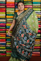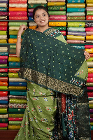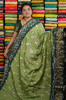 Soft Crushed Silk Printed Light And Dark Green Saree