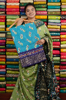 Soft Crushed Silk Printed Light Blue And Navy Blue Saree