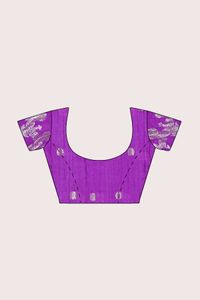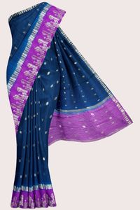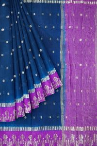 Soft Crushed Silk Zari Weaving Butti Blue With Brinjal Saree