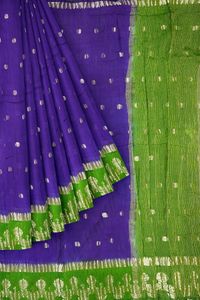 Soft Crushed Silk Zari Weaving Butti Purple With Green Saree