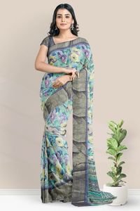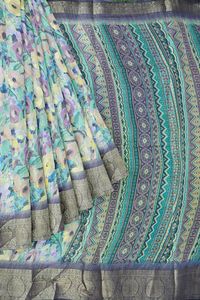 Soft Doroyal Silk Floral Digital Print MinteGreen And Dark Blue Saree