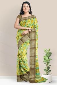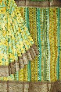 Soft Doroyal Silk Floral Digital Print Yellow And Brown Saree