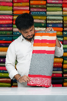 Soft Emboose Georgette Doriya Lines Ash With Pink Saree