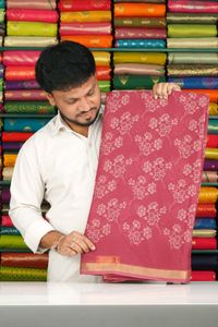 Soft Emboose Georgette Floral Digital Print Kadi Border Pink Saree
