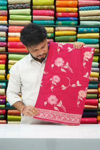 Soft Emboose Silk And Badla Zari Weaving Magenta Pink Saree