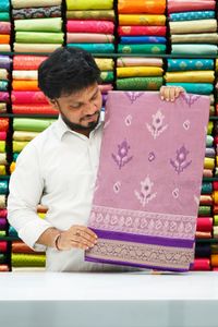 Soft Emboose Silk And Ikkath Print Lavender With Purple Saree