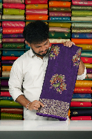 Soft Emboose Silk Floral Digital Print Dark Purple Saree