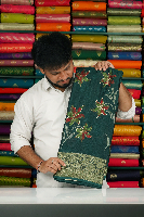 Soft Emboose Silk Lahariya Floral Print Dark Bottle Green Saree