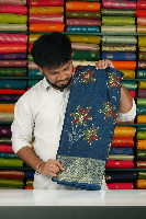 Soft Emboose Silk Lahariya Floral Print Dark Coppersulphate Blue Saree