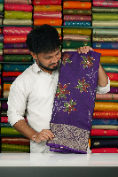 Soft Emboose Silk Lahariya Floral Print Dark Purple Saree