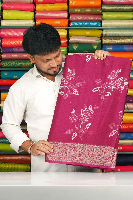 Soft Emboose Silk Rose Digital Print Floral Border Magenta Pink Saree