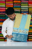 Soft Emboose Silk RunCut Design Chandanam Yellow With Dark Blue Saree