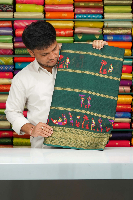 Soft Gadi Silk Tribal Print Dark Bottle Green Colour Saree