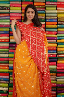 Soft Georgette Bandini Print Yellow With Red Saree