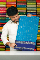 Soft Georgette Checks With Gap Border Coppersulphate Blue With Navy Blue Saree