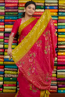 Soft Georgette Foil Print Pink With Pesara Yellow Saree