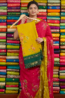 Soft Georgette Foil Print Yellow With Green Saree