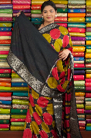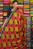 Soft Georgette Mika Print Pink And MehandhiGreen And Black Saree