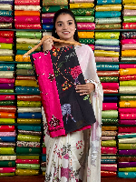 Soft Georgette Printed With Designer Blouse Black With Pink Saree