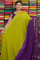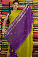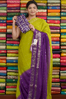 Soft Georgette Tie And Die Pesara Green With Purple Saree