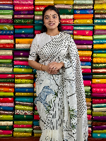 Soft Glass Tussar Scallop Border Daear Design Half White Saree